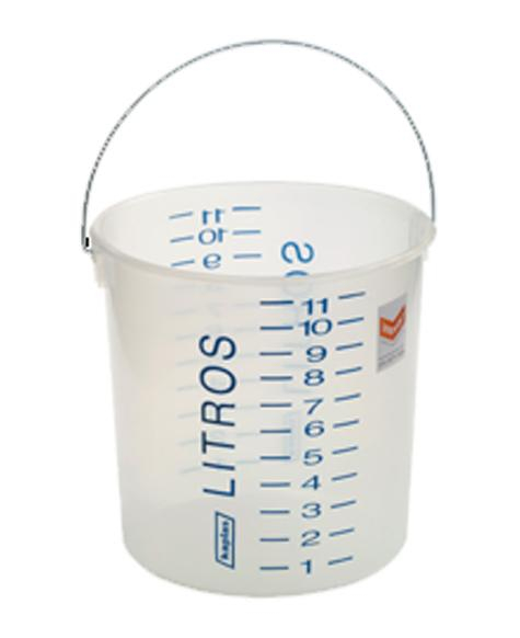 Balde graduado transparente com graduação de volume Alça central Para dosagem de água e demais aditivos Material: plástico