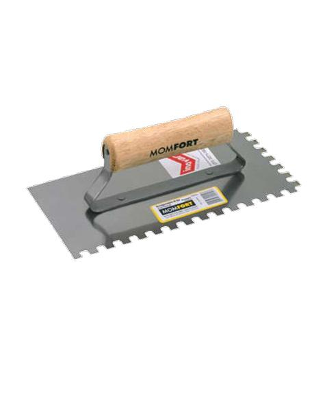 Dentes 8x8 mm, produzida em aço ZN de excelente qualidade. Indicada para aplicação de argamassa colante, cola para pisos de borracha e na pintura a base de textura