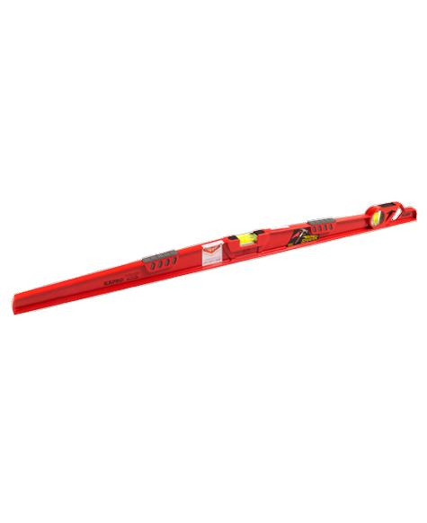 O nível Kapro é fabricado em alumínio trapezoidal reforçado, o que garante maior durabilidade e precisão. Possui borrachas pra receber impacto Suas bolhas tem precisão de 0,5mm/m 2 bolhas (1 bolha na horizontal e 1 bolha na vertical) Tamanho: 80 cm